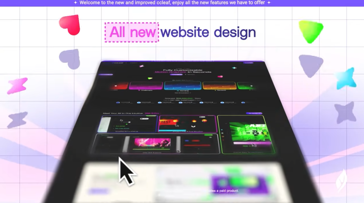Faster. Cleaner. Built to scale. ccLeaf v4 is a complete rebuild โ designed for speed, precision, and high-performance workflows. ccLeaf is a web-based motion graphic editor built for creators who want professional motion graphics without the complexity of traditional tools.